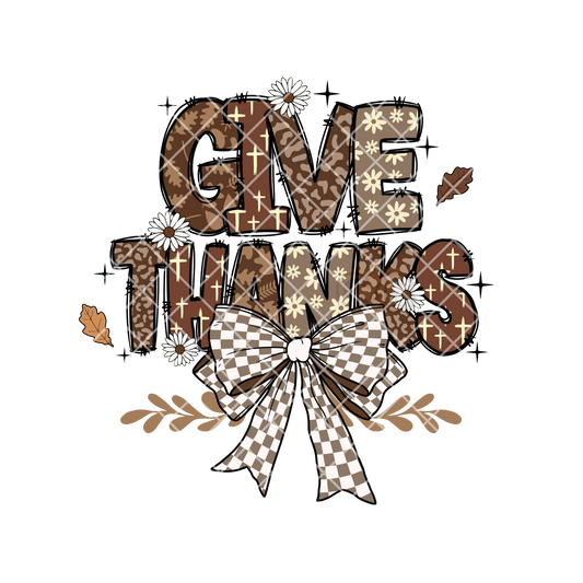 Give Thanks Checkered Bow T-Shirt