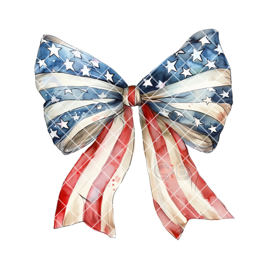 American Flag Water Color Blue Bow - T-Shirt, Premium Graphic, Trendy T-Shirt for Casual Wear
