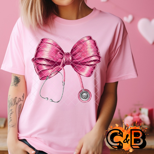 Valentine nurse pink bow stethoscope PNG