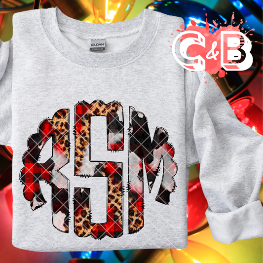 Custom Christmas Monogram Plaid Cheetah PNG