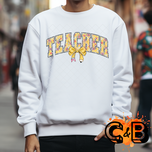 Teacher pencil theme pencil bow PNG