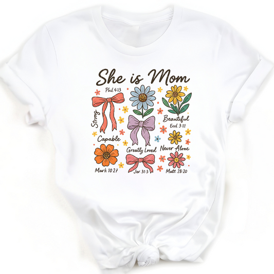 She Is Mom Bows Flowers Scripture PNG