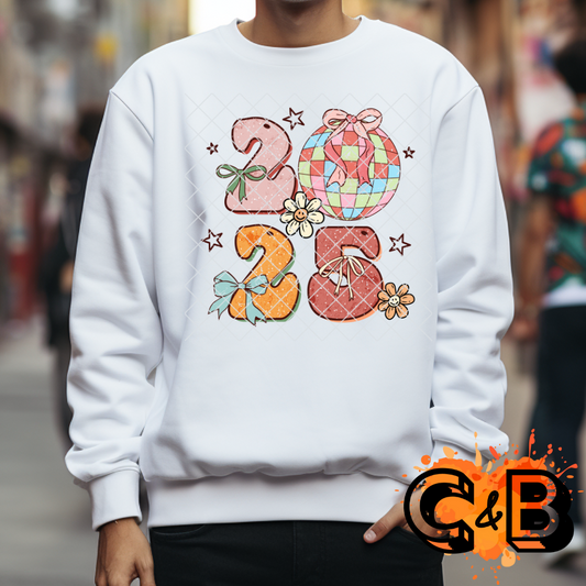 2025 disco ball glitter bow PNG