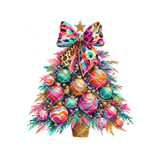 Color Print Christmas Tree With Bow DTF Transfer