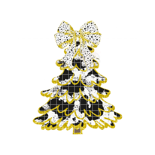 Christmas Tree White & Gold Bow DTF Transfer