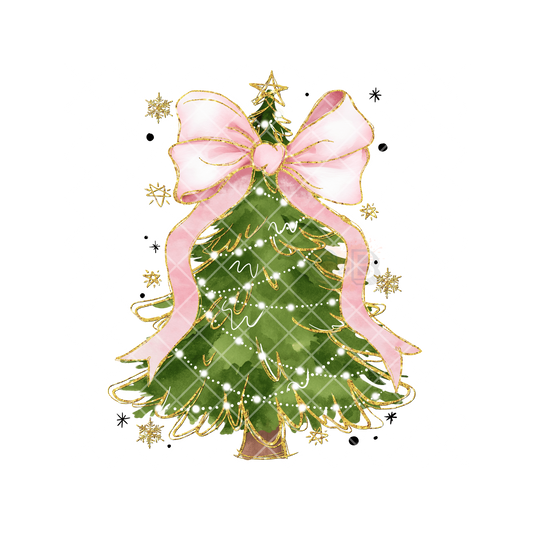 Christmas Tree Pink Bow DTF Transfer