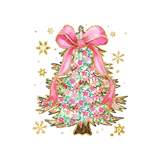 Christmas Tree Pink Bow Floral Pattern DTF Transfer