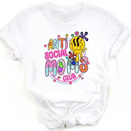 Anti Social Moms Club - Direct Print Film Transfer for T-Shirts, Cotton, Polyester & Blends - High-Quality Print
