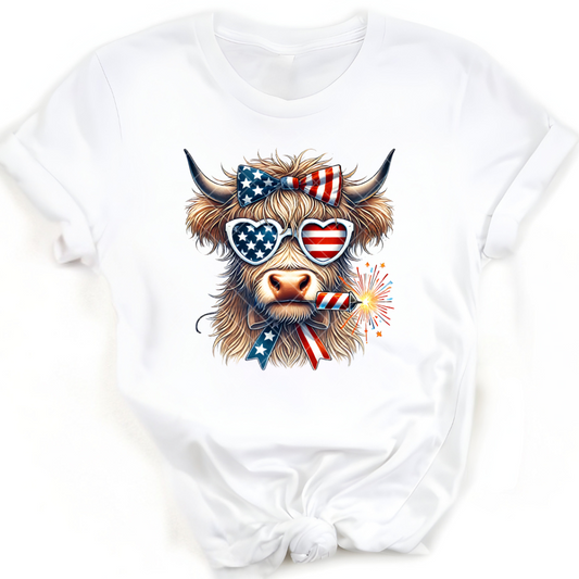 American Highland Cow - Direct Print Film Transfer for Trendy T-Shirts, Cotton, Polyester & Blends - High-Quality Print