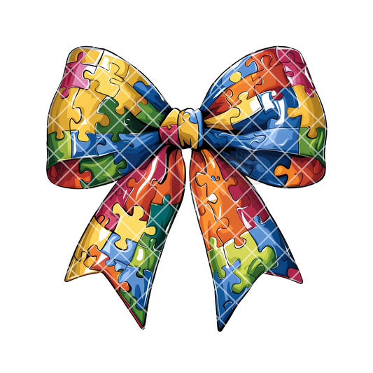 Autism awareness multicolor bow DTF film t shirt transfer
