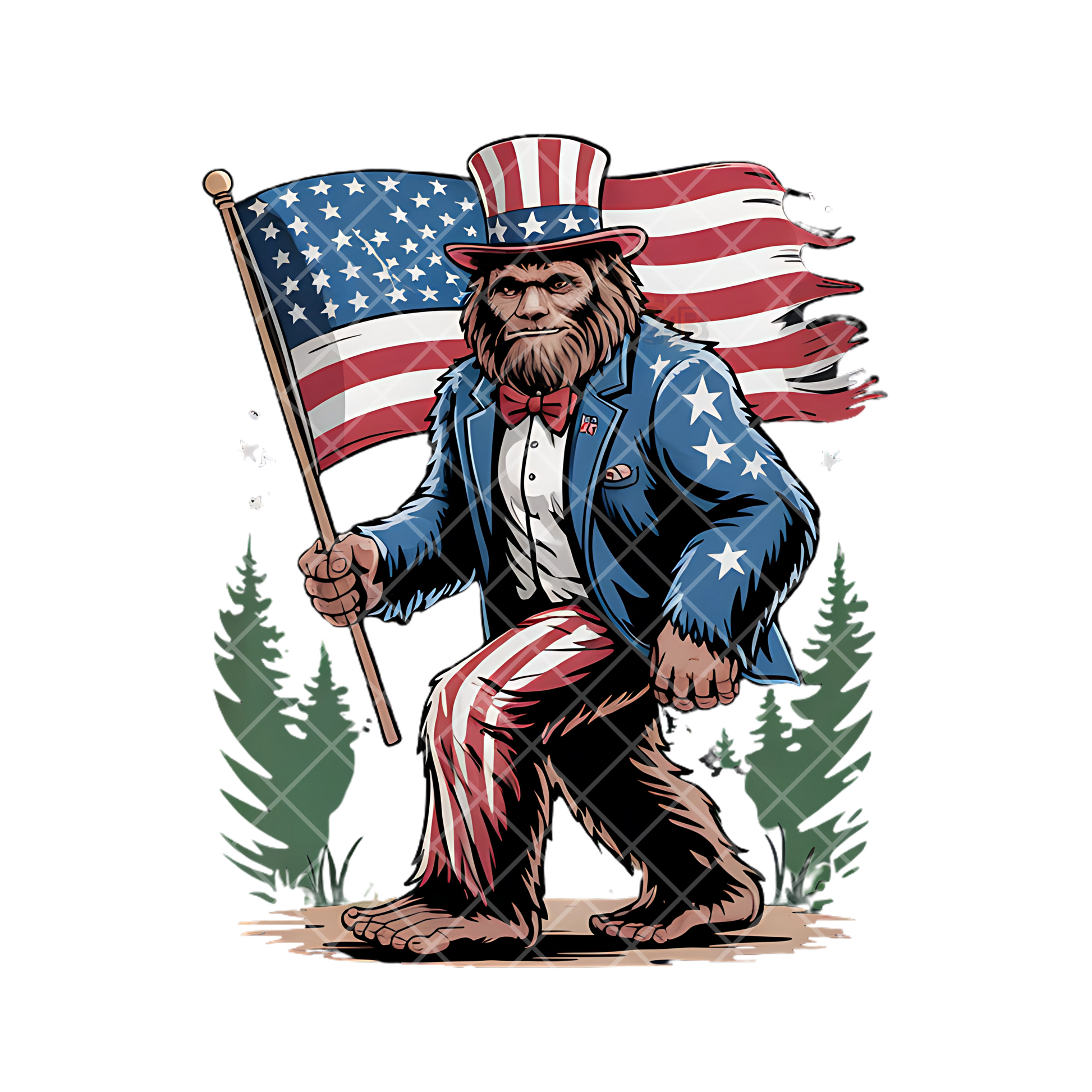 Bigfoot Carrying American Flag PNG