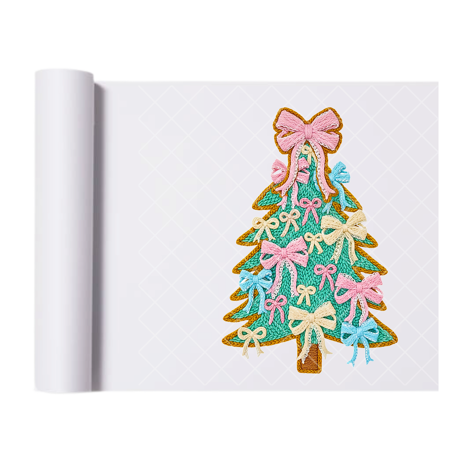 Bow Christmas Tree Faux Stitch - Direct-To-Film Heat Transfer for T-Shirts, Cotton, Polyester & Blends - High-Quality Print