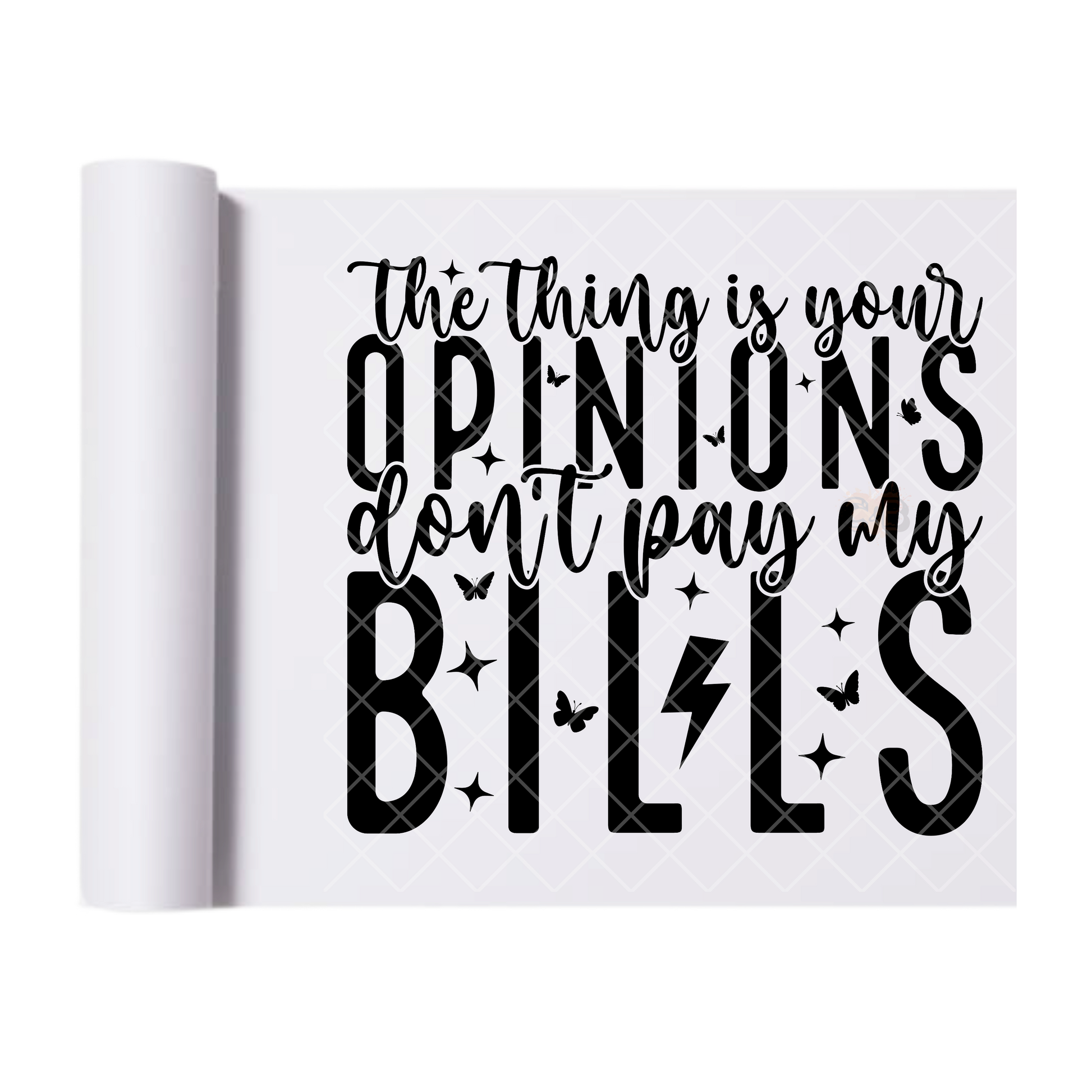 Opinions Pay My Bills - Direct Print Film Transfer for T-Shirts, Cotton, Polyester & Blends - High-Quality Print