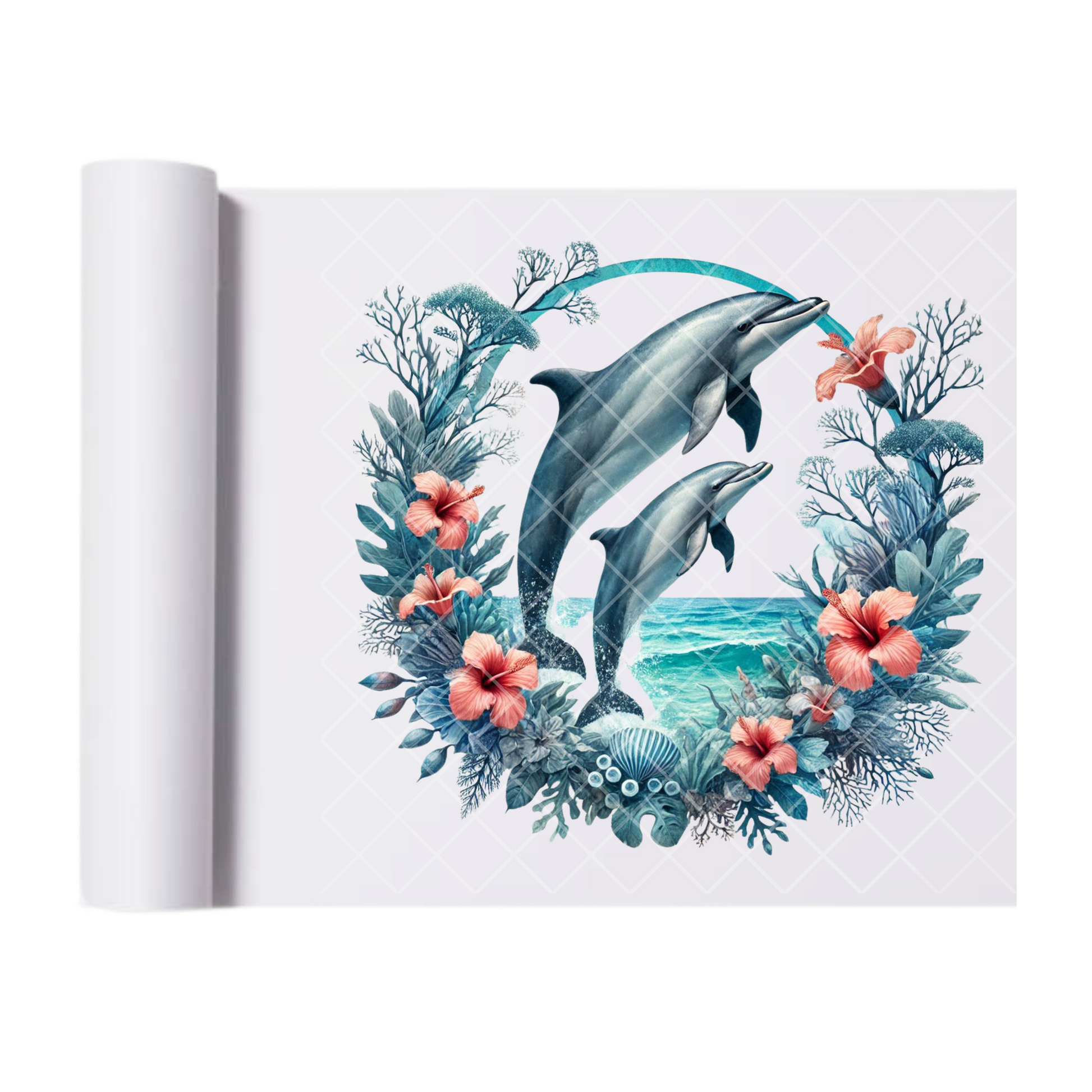 Dolphins Circular floral wreath - Direct Print Film Transfer for Trendy T-Shirts, Cotton, Polyester & Blends - High-Quality Print