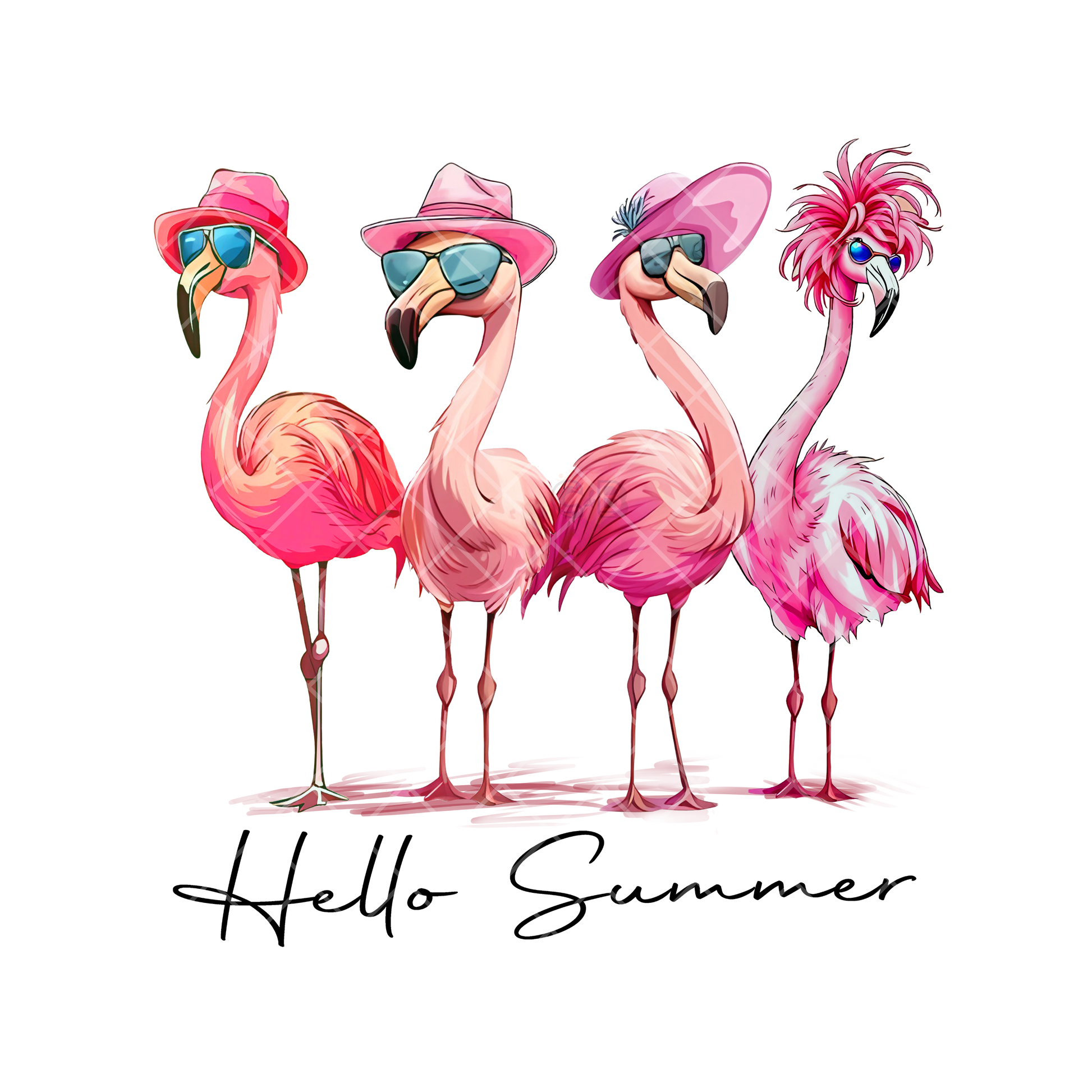 Hello Summer Pink Flamingos PNG