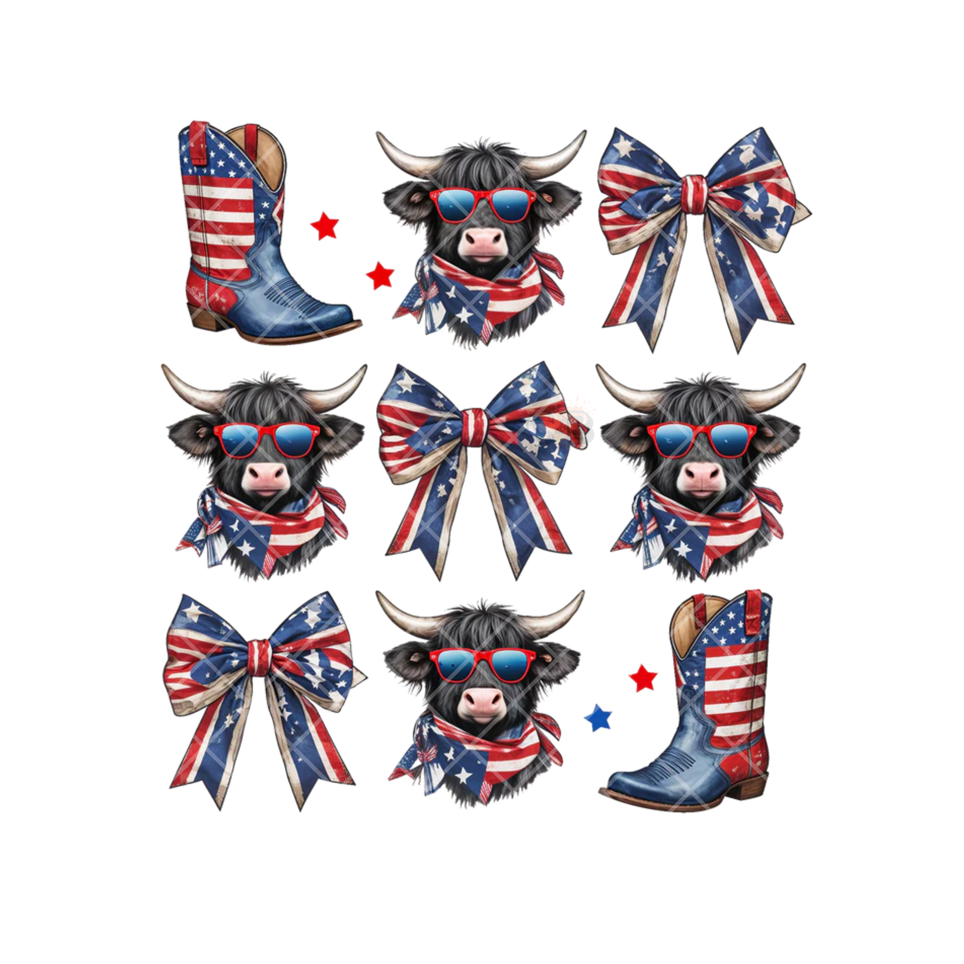 Independence Day Steer Boots Bows PNG