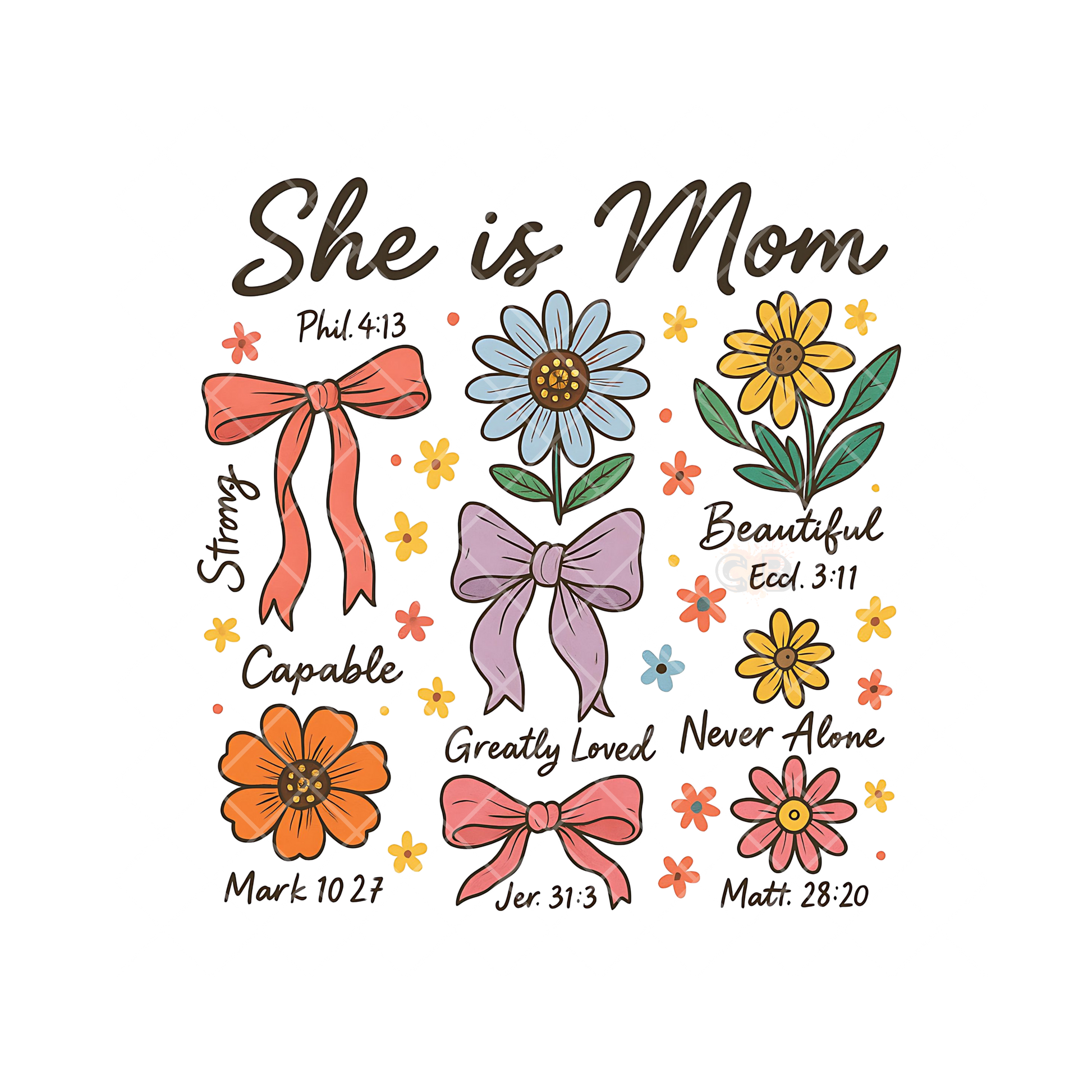 She Is Mom Bows Flowers Scripture PNG